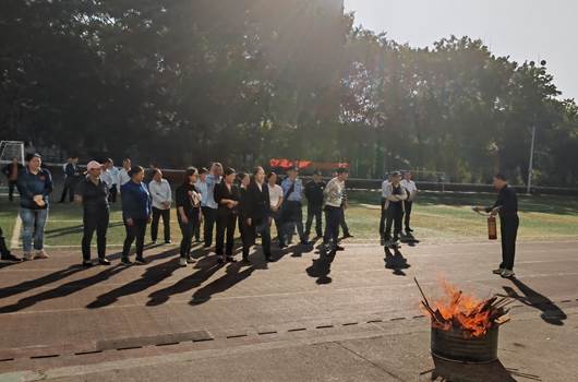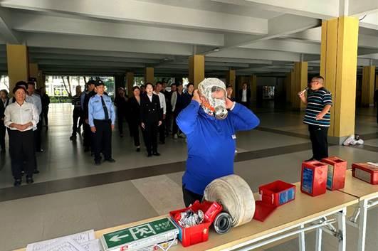 参加培训的人员包括五山校区各部门、单位消防安全责任人、安全管理员,保卫部工作人员,驻校物业公司校区经理、保安队长、班长,宿舍管理主管人员,教学课室管理员,食堂经理、安全管理员和相关员工,快递站负责人和安全管理员。培训内容涵盖了消防安全基本知识、干粉灭火器使用、防烟面具使用、消防栓接驳使用、消防报警装置使用等多个方面的讲解、实操。通过工作人员的讲解和大家的现场实操,参训人员对各项安全防范知识和基本技能有了更深入的理解和掌握。