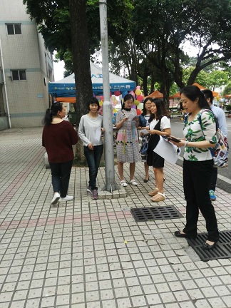 图:宿舍导师小组在宿舍楼前集合签到