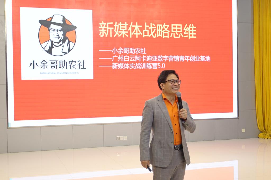 在主题分享环节,张小余结合自身工作经历,以及广东省三旧改造协会专家、百万粉丝三农博主、企业家等多重身份,围绕《新媒体战略思维》展开深度讲解。他系统提炼新媒体运营“三招秘籍”,强调“人设差异化、选题价值化、传播场景化”是新媒体成功的核心三要素。针对创业者普遍关注的流量变现难题,张小余提出“天龙八部・流量变现 18 招”,从商业合作、电商带货到知识付费,通过乡村特产直播爆单、个人IP 孵化等真实案例,拆解从流量积累到商业闭环的完整路径,为在场师生提供了可落地的方法论。