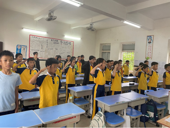 图:2023年11月1日低山村小学学生学习敬军礼