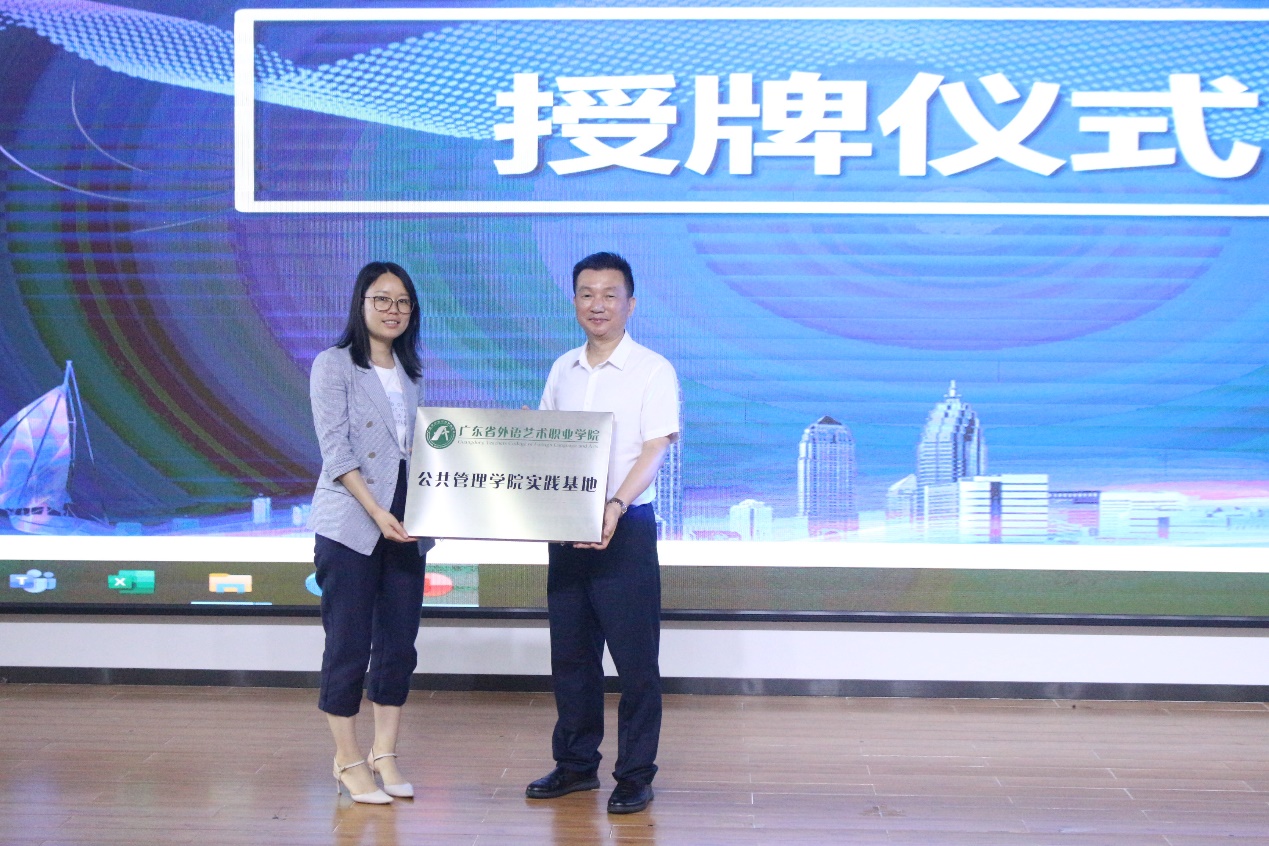 随后,校企双方举行合作协议签约及授牌仪式。企业代表肖黎君与张晖共同签署校企合作协议书。张侃为肖黎君颁授公共管理与服务学院实践基地牌匾,肖黎君赠予我校索迪斯吉祥物。
