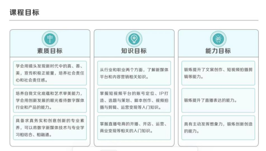 此次DOU学春季班历时两个月,采取小鹅通平台进行在线直播+录播学习形式,培训内容包括账号定位、内容设计、拍摄剪辑、新媒体岗位认知与职业规划等。在传统理论与实操的教学模式上,加入了帮助学生做职业规划模块,赋能更多新媒体知识,助力学生就业。
