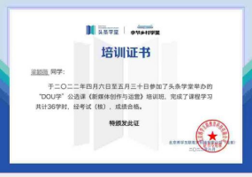 (图为:DOU学公选课春季班电子结业培训证书)
