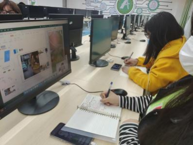 (图为:商管学生在线体验春季班直播课程学习)