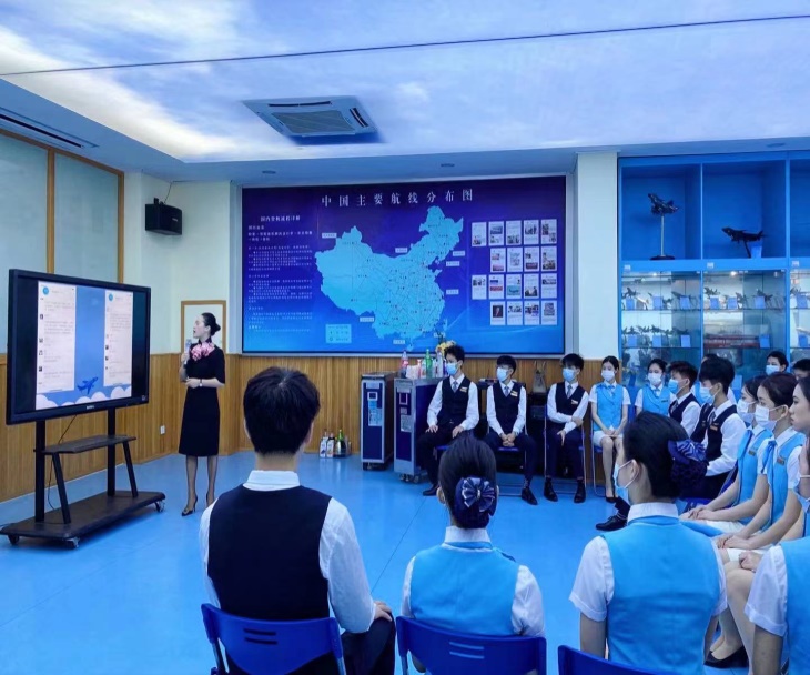图:王艺青的课堂 业务精熟,教学改革出彩 王艺青毕业于星海音乐学院,原是音乐学专业的。为了积极响应学校专业发展需求进行自我专业转型,从音乐学转型到航空服务专业,是航空服务讲师,并担任航空服务与空中乘务专业的教研室主任。在转型过程中王艺青刻苦钻研,担当使命,不断更新教育理念,在课堂教学中积极探索改革创新,形成了鲜明的教学特色,她还作为教育教学改革优秀个人在全校教师座谈会分享自己的教学改革创新案例,并多次在全校开展示范公开课。王艺青除了积极钻研教学外,还将所学传于他人,她担任了学校廖晓璐、罗东霞、龚浩等3名青年教师及多名实习教师的指导教师。任职以来多次荣获“优秀教师”称号,教学质量评价多次获评“优秀”,教学风格深受学生喜爱。
