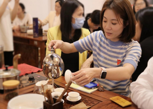 为弘扬传承中华优秀传统文化,不断丰富教职工文化生活,近日,公共管理与服务学院分工会以“茶韵悠长立德修身 中华文化厚植深耕”为主题,在海珠校区茶艺实训室开展三八妇女节茶艺活动。此次活动旨在通过拾习茶艺,增强文化自信的同时,以茶修身,厚植茶文化中蕴含的“清廉、厚德、公正、谦和”的精神特质,在思想淬炼、政治历练、实践锻炼中履职能力,绽放教育事业巾帼风采。 图一:学院分工会主席张举正主持活动 活动特别邀请了学院婚庆教研室教师、高级茶艺师马春霞老师担任活动指导老师,学院全体女教工参加了活动。 活动伊始,马老师讲授了茶叶的基本知识、茶艺文化的演变过程和各类茶的正确冲泡方式等,从习俗、茶艺、礼仪、道德、修为等方面层层深入,提升品味,陶冶情操,并现场进行了红茶茶艺表演。 图二:马春霞老师讲解 随后,在茶艺实操教学与互动环节中,马老师现场示范每一件茶艺工具的使用方法,“一看二闻三品,一口为润、二口为饮、三口为品…”,老师们在马老师的带领下,兴趣盎然,积极互动,利用案上茶具纷纷效仿,现场演习茶艺技艺,习得茶道礼仪。 图三:老师们动手实操 随着袅袅茶香的升腾,老师们频频互动,一边品茶一边交流,气氛温馨而热烈,大家品味香茗,品味生活,感受泱泱古国茶文化的香醇魅力,享受这茶韵飘香的温馨时光。 图四:马春霞老师作茶艺展示 茶艺活动的开展,让老师们对茶文化及茶叶冲泡技巧知识有了更深认识,激发了大家对传统文化的兴趣和热爱,让女教工在属于自己的节日里有了一番别样的体验,更增强了我院女教工的归属感和幸福感。