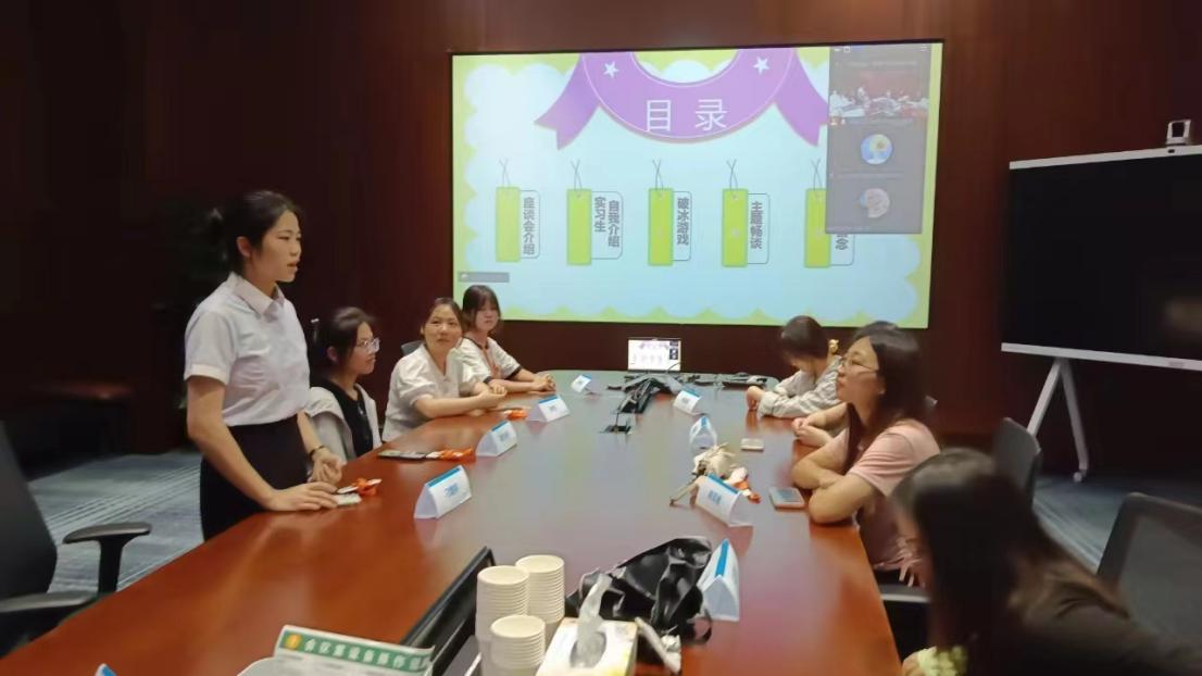 图:企业座谈会现场 本次座谈会分为5个环节,分别是座谈会介绍、自我介绍、破冰游戏、主题畅谈以及合影留念。会中郑翠薇经理十分关心实践同学们的工作生活情况,结合大家自我介绍中的问题,分享自己的看法及不同问题的解决途径,同学们也获得更加丰富的实践经验加持。