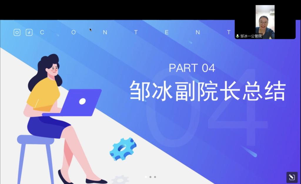 图:黄旭欣老师培训 最后,邹冰对本次培训交流活动进行总结。在听完各位队员的岗位分享感到非常欣喜,刚刚进入实践岗位的同学们已经对自己的工作岗位和内容有了一定的认识。而在这清晰的目标导向下,大家在接下来的实践生涯中能更加清晰地知道自己应该做什么。各位队员是学院与索迪斯之间的第二个接力棒,希望大家背靠学院,在索迪斯能够有更好的收获与提升。在索迪斯暑期社会实践这个大学堂,对同学们提出了3个期待:以工作者的身份去解决问题;以学习者的身份去积累经验;以主人翁的身份参与实践。