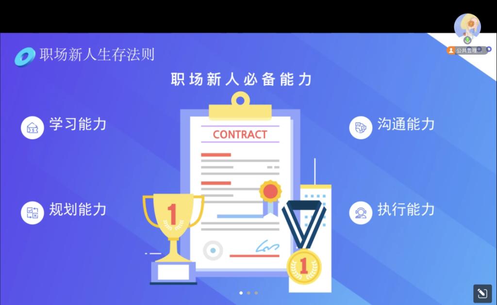 图:张举正书记致辞 接下来各位参加索迪斯暑期社会实践的队员们按照名单,依次介绍了自己在索迪斯实践的区域及所负责的岗位。在各位队员的分享中不难听出她们正在慢慢熟悉自己的工作岗位,逐渐在索迪斯实践导师的指导下工作变得游刃有余。 随后,黄旭欣对各位队员进行实践培训-新人职场生存法则。她认为职场新人需要具备四种能力,即学习能力、沟通能力、规划能力和执行能力。还针对“职场学生思维误区”、“职场禁忌”、“新人在职场犯错怎么办?”等职场实践常见问题为同学们答疑解惑。