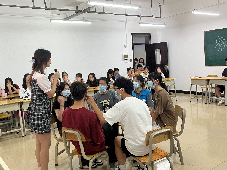 图:活动现场 活动中,各班助班给新生们讲解有关本班的情况,指出同学们要学会用尊重、信任、友爱、宽容的态度与他人相处、善于与同学们合作和分享,感受生活的丰富多彩。希望同学们加强对心理健康的重视,培养优良的心理品质,促进身心健康的良好发展。 新生们在小讲师的带领下,开展了“你画我猜”、“害你在心口难开”、“请问他是谁”等趣味项目,渐渐消除了同学们的陌生感与距离感,现场气氛欢快和谐。