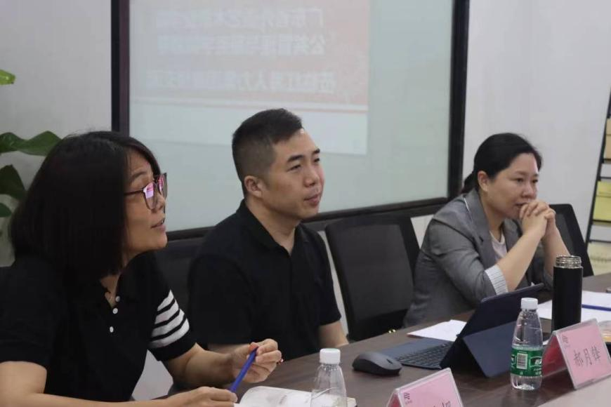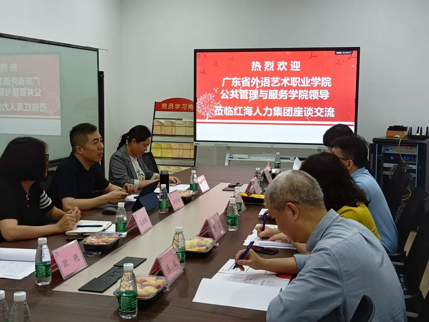 图:参观红海集团数字展厅 洽谈会正式开始后,红海集团广州片区总经理郝月锋对我们的到来表示热烈的欢迎。接着方坚伟院长向红海集团介绍了公共管理与服务学院的情况以及今后的发展规划;并感谢红海集团在人力资源管理专业发展中给予的支持方坚伟院长表示我们双方在人才共育、资源共享方面取得了的很多成果,也希望借助申报校企合作生产性实践典型案例的机会能继续深度挖掘合作的机会能更上平台,结更多硕果。 紧接着校企双方围绕着数智化人力资源服务人才能力需求、人才共育模式的推进、学生创新团队的培育等具体问题展开了激烈的讨论,并形成共识,以成果转化为导向,以创新团队培育为切入点,校企合作共育数字化人力资源服务人才,并期待未来有机会共建人力资源产业学院。
