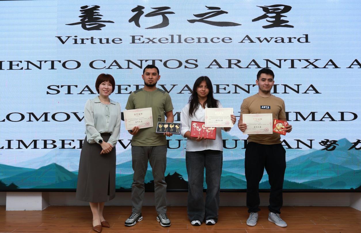 表彰环节,袁洪和国际教育学院领导班子为上学期在学业成绩、品德等方面表现突出的优秀留学生颁发了荣誉奖项,这不仅是对获奖留学生卓越表现的肯定,更是对全体留学生的一种激励,鼓励他们更加勤奋学习,积极参与校园文化及各类活动,为校园的多元文化交流贡献力量。