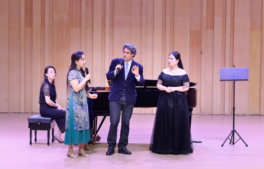 3月25日至26日,太阳成集团tyc33455cc音乐舞蹈学院成功举办中意文化交流活动,特邀意大利帕尔玛音乐学院(Conservatorio Arrigo Boito di PARMA)作曲系教授卢卡·泰萨德莱利(Luca Tessadrelli)及旅欧抒情花腔女高音、摩纳哥歌剧院演员吴越女士到校开展学术讲座、独唱音乐会、声乐大师课等系列文化交流活动,为师生带来一场精彩纷呈的艺术盛宴。