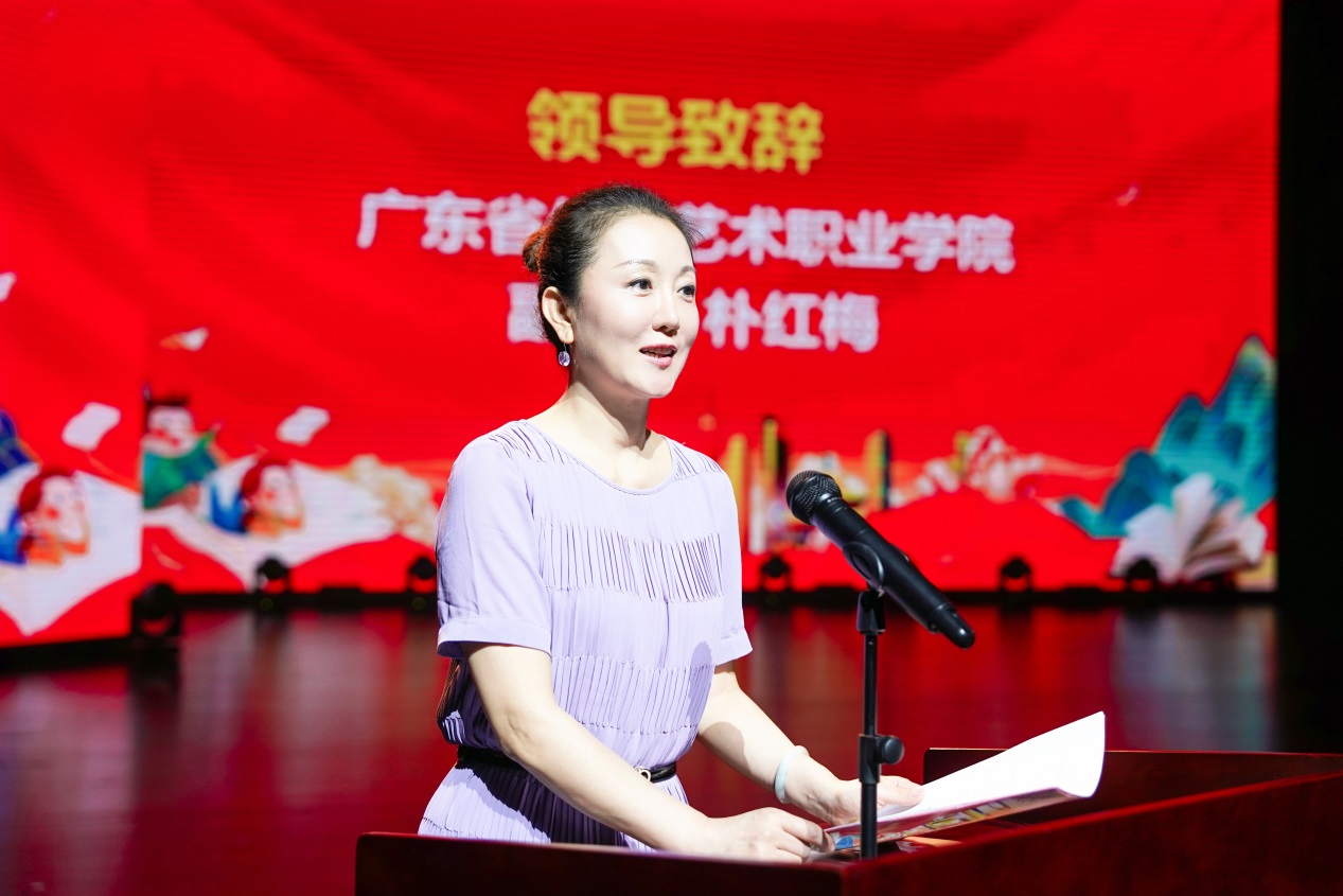 我校副校长朴红梅在致辞中表示,美育是审美教育、情操教育、心灵教育,也是丰富想象力和培养创新意识的教育。学校历来重视艺术类专业建设和艺术人才培育,不断加强优势学科布局,出台一系列政策举措,为学校美育搭建了“四梁八柱”制度体系,注重通过美育让学生发现美、感受美、创造美。此次美育展演活动是学校积极落实广东省教育厅美育浸润行动计划的充分展现,是推进“五育融合”教育实践的具体行动,也是学校落实省委“1310”具体部署和推进“百千万工程”的生动实践。
