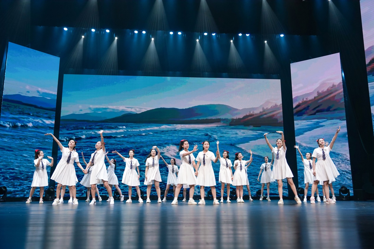 开场以充满活力的表演唱拉开序幕,我校学生通过演唱歌曲《欢乐音乐岛》营造出无忧无虑、充满快乐的音乐世界,让观众瞬间沉浸于美的享受之中,感受音乐带来的纯粹快乐。
