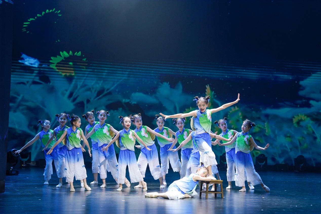 舞蹈《陶醉了》通过流畅的动作,表现沉浸在艺术世界中的忘我状态,引领着孩子们在艺术探索过程中逐渐被美所吸引,无法自拔的美妙体验。