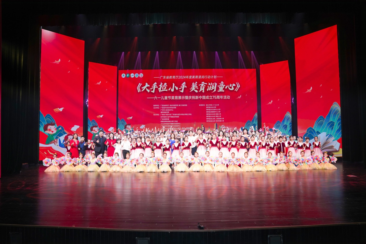 为庆祝“六一”国际儿童节和新中国成立75周年,展示美育浸润成果,提高青少年艺术修养,5月25日,我校联合广州市儿童活动中心、佛冈县教育局成功举办了“大手拉小手 美育润童心”六一儿童节美育展演暨庆祝新中国成立75周年活动。