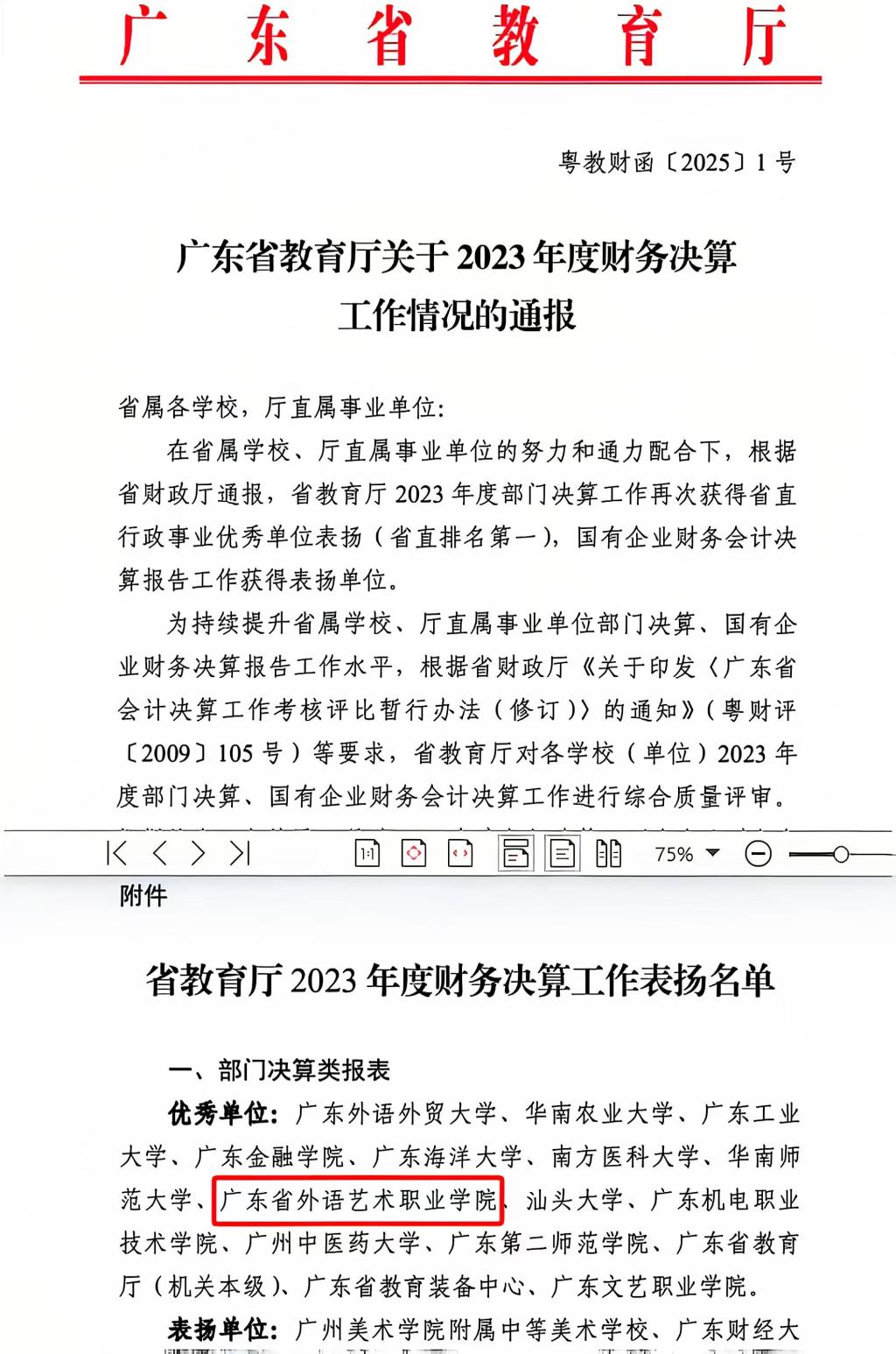 近日,广东省教育厅下发通报,我校2023年财务决算工作再次脱颖而出,荣获“优秀单位”称号。这是我校财务决算工作第2次荣获“优秀”称号,全省仅有3所高职院校获此荣誉。