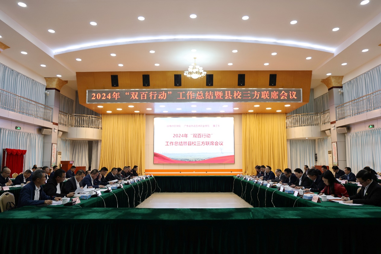 为深入贯彻落实省委省政府“1310”具体部署,全面梳理总结2024年“双百行动”工作情况,组织化、系统化、项目化地谋划和推动2025年校地合作共建,1月8日,2024年“双百行动”工作总结暨县校三方联席会议在廉江市人民会堂召开。学校党委书记马栩生,岭南师范学院党委副书记、校长阳爱民,廉江市委书记陈恩才、市委副书记、市长柯俊及三方相关单位负责人等出席会议。会议由柯俊主持。