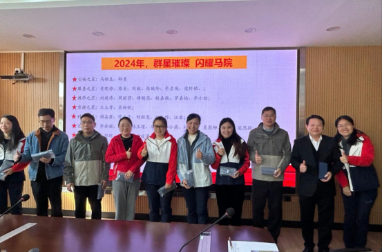 郝勇对2024年在服务、教学、宣讲、科研等工作中取得优异成绩的教师代表颁奖。他在总结讲话中指出,人工智能代替不了思想政治教育工作,未来思政课教师面临的挑战与机遇并存,勉励大家共同建设好马院,并在工作中要树立“四目标”、围绕“五提升”、着力“六加强”。他最后号召大家接续奋斗,发扬马院人“团结、拼搏、求是、笃行”的精神,为强团队,树品牌,助力学校高质量发展再创佳绩。