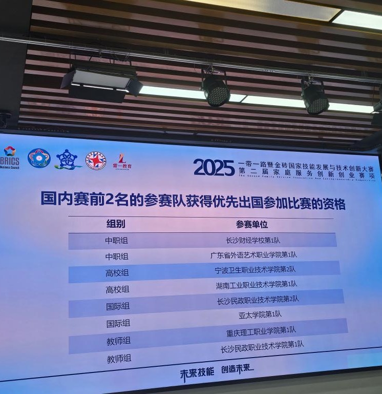 此次在两个赛项双双跻身国际总决赛,是我校长期以来践行“以赛促教、以赛促学、以赛促建”育人理念的生动体现,也是教育教学成果的一次集中检验。学校将继续深化教学改革,依托专业与师资优势,不断优化课程体系,加强实践教学与实训基地建设,着力培养更多“理论扎实、技能娴熟、善于沟通、精于指导”的高素质专业化人才,为家庭服务与教育事业的蓬勃发展持续贡献智慧与力量。