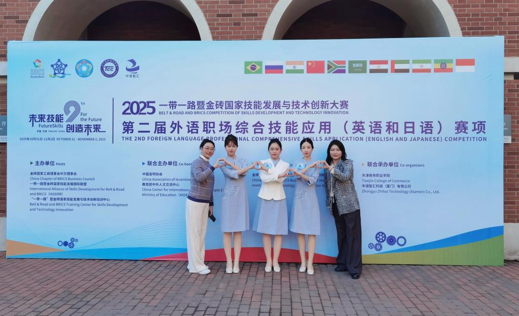 11月1日至2日,2025“一带一路”暨金砖国家技能发展与技术创新大赛外语职场综合技能应用(英语和日语)赛项全国决赛在天津商务职业学院成功举办。我校外语外贸学院两支参赛团队表现优异。由林超、詹作琼老师指导的朱少婷、刘淑敏、陈海燕团队勇夺英语赛项全国一等奖,吴思佳、蓝媚老师指导的何科广、韦敏婷、黄译可团队荣获日语赛项全国二等奖,充分展现了我校外语人才培养的扎实成效。
