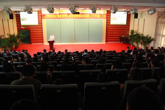 9月17日下午,根据省教育工委《印发〈关于2012年广东省教育系统开展纪律教育学习月活动的意见〉的通知》(粤教工委办函〔2012〕22号)要求,我院在五山校区行政楼学术会议厅召开2012年纪律教育学习月活动暨推进廉政风险防控工作动员大会。学院党委李曲生书记对学院开展纪律教育学习月活动暨推进廉政风险防控工作进行了动员部署。会议由郑永江副院长主持。曾用强、吴建琪、林红等学院领导、各党总支部书记、民主党派负责人、全体行政教辅工作人员、教学单位管理人员、教师代表、辅导员代表、后勤服务集团科级以上干部以及学生代表参加了会议。