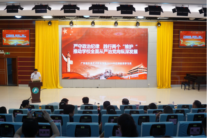 9月14日下午我校采用现场加视频直播的方式,在五山、燕岭两校区同步召开2020年纪律教育学习月动员大会。全体校领导及全体教职工、老干党支部负责人、学生党支部书记出席了会议,会议由学校党委副书记、纪委书记陈楚瑞主持,陈楚瑞做了主题为“严守政治纪律,践行‘两个维护’——推动学校全面从严治党向纵深发展”的动员讲话。