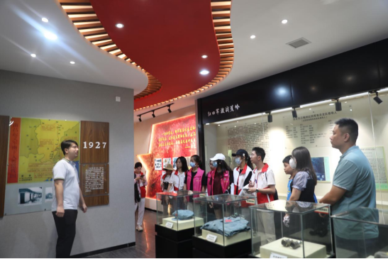 东岭村凭借得天独厚的红色基因,感人至深的红色故事,深入挖掘保护利用红色资源,不断完善基础设施建设,推动形成红色文化教育基地。Happy熊实践队在蕉岭县东岭革命历史事迹展馆上了一堂沉浸式微党课,三圳镇人民政府党建办主任、镇团委委员赖卓凡为队员们讲述了蕉岭县的革命之路和乡村振兴发展轨迹,队员们充分了解了蕉岭17处重要的革命史迹和发生在蕉岭的3次重要战斗,由衷地感受到蕉岭新貌建设来之不易。实践队员吕彩婷表示:“山路的蜿蜒崎岖,可以想象当年战争的艰辛!看到一颗‘长’在树上的手榴弹,我们可以联想到当时战争的残酷,希望每一个看到这个文物的人,都能始终铭记惨痛的历史。作为新一代的接班人,只有我们团结一心、奋斗拼搏,才能强大中国。”