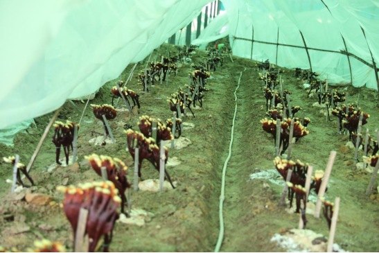 东岭村背靠高山,土质肥沃、水质清澈的地理环境适合种植灵芝。东岭村在不断探索中发展出了灵芝种植这条致富道路,使得村民们的收入有了保障。其次,东岭村土壤富含硒等多种矿物质,养殖的蜂蜜糖度高,不少村民把养蜂作为主要产业,上百位村民得以找到就业机会,全面推进乡村振兴正引领村民走上致富之路。