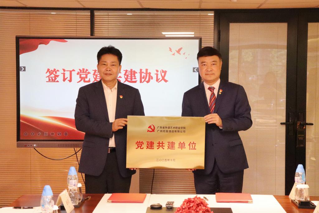 为创新党建工作载体,以高质量党建引领事业高质量发展,10月29日下午,我校与广州花园酒店举行党建共建签约暨赠牌仪式。学校副校长张斌,组织宣传统战部、食品工程学院相关负责人参加共建活动,广州花园酒店党总支委员、工会主席谭志超和党总支委员、总经理助理邹倩雅等共同接待。