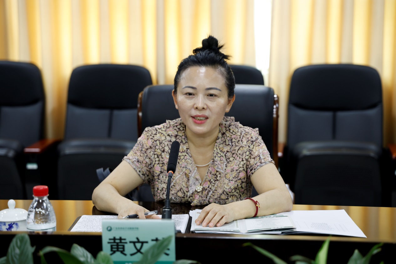 黄泽瑜介绍了我校招生、学生管理、学生就业等方面的具体情况。