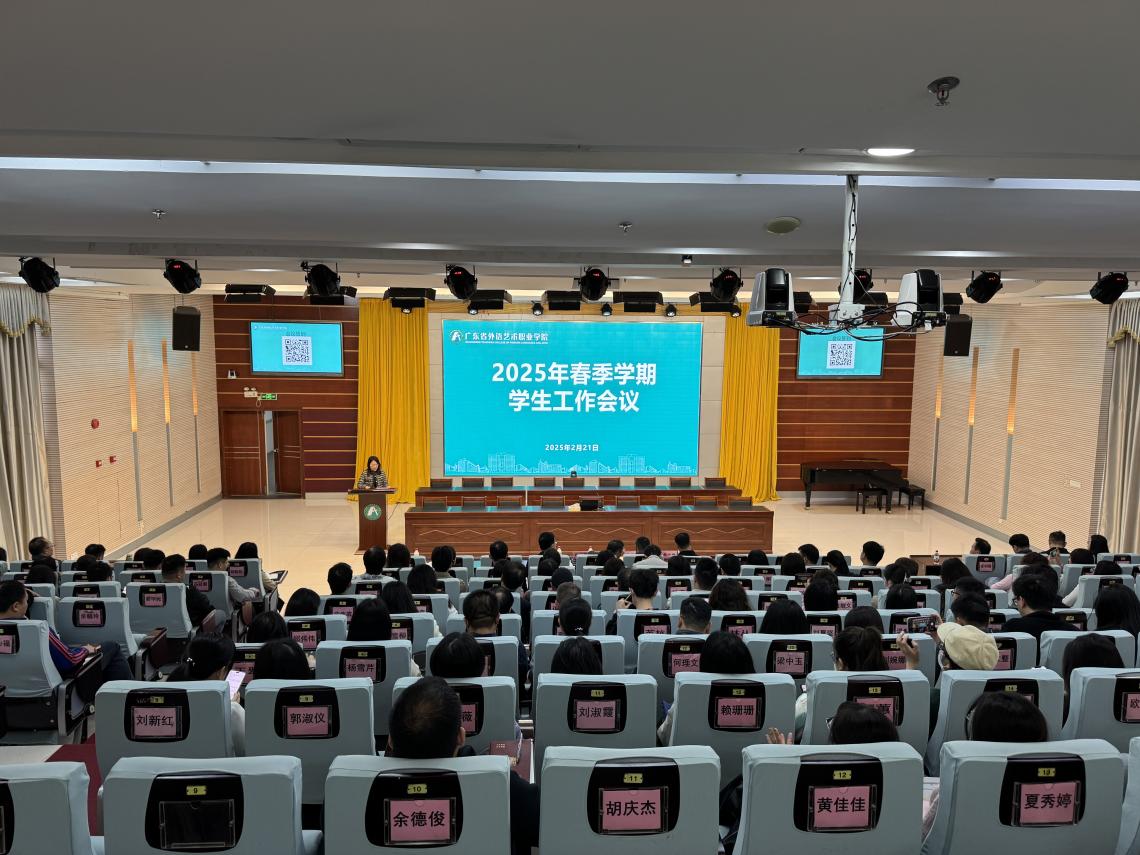为做好新学期学生返校及教育管理服务工作,2月21日上午,学校召开2025年春季学期学生工作会议。学校党委副书记黄泽瑜出席会议并讲话,各二级学院党组织书记、副书记,辅导员、学生工作部、招生与就业指导中心、团委全体人员参加会议。