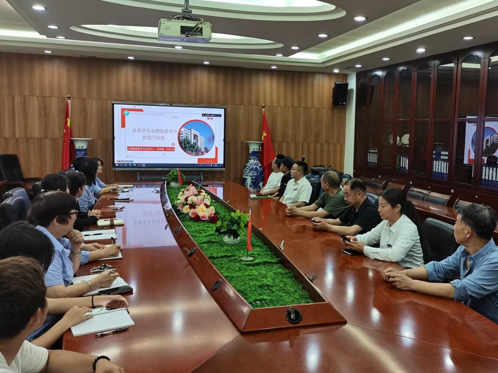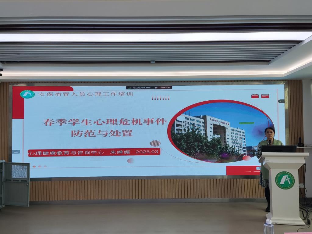 为进一步提升我校安保、宿管、食堂员工预防校园安全危机的能力,建设更加安全文明的校园,3月14日,春季学生心理危机事件防范与处置培训会以线上线下结合形式在六个校区开展。学生工作部部长曾祥翼、保卫部部长陈静浪,学生工作部、后勤部、保卫部相关人员及各校区全体保安员、宿管员和食堂员工共120余人参与培训。培训由学生工作部心理健康教育与咨询中心主任朱婵媚主讲。