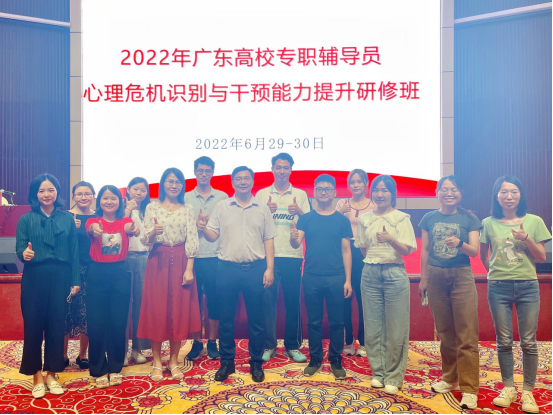 为贯彻落实《教育部办公厅关于加强学生心理健康管理工作的通知》的工作要求,提升我校学生工作队伍心理健康教育专业化水平,我校积极响应广东省高心委的号召,学工队伍代表于6月底参加了“广东高校专职辅导员心理危机识别与干预能力提升专题研修班”线下培训课程,此次培训共有15名教师参加,包括学院副书记1人、专职心理健康教师3人、辅导员11人。