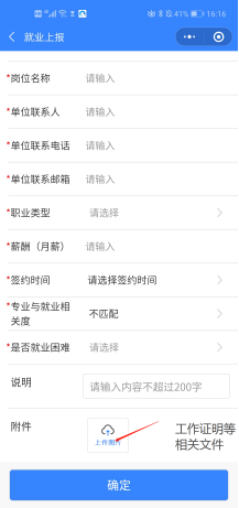 第二步:填写入职公司的相关信息: 第三步:上传附件,确定提交